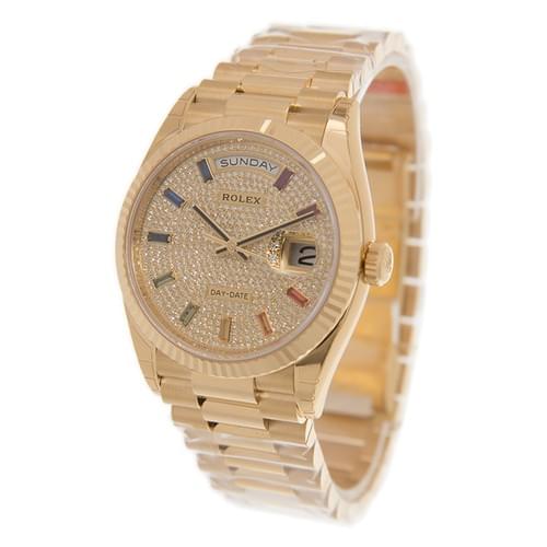 全新 ROLEX 勞力士 星期日曆型 DAY-DATE 128238-0051 RAINBOW SAPPHIRE DIAMONDS PAVED 彩虹 密鑲鑽石